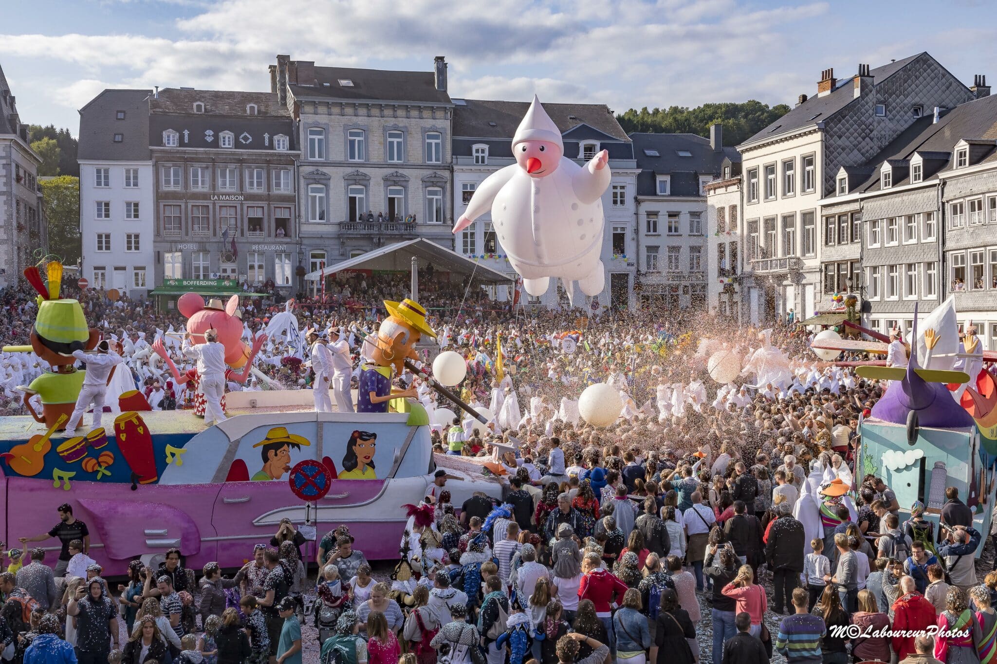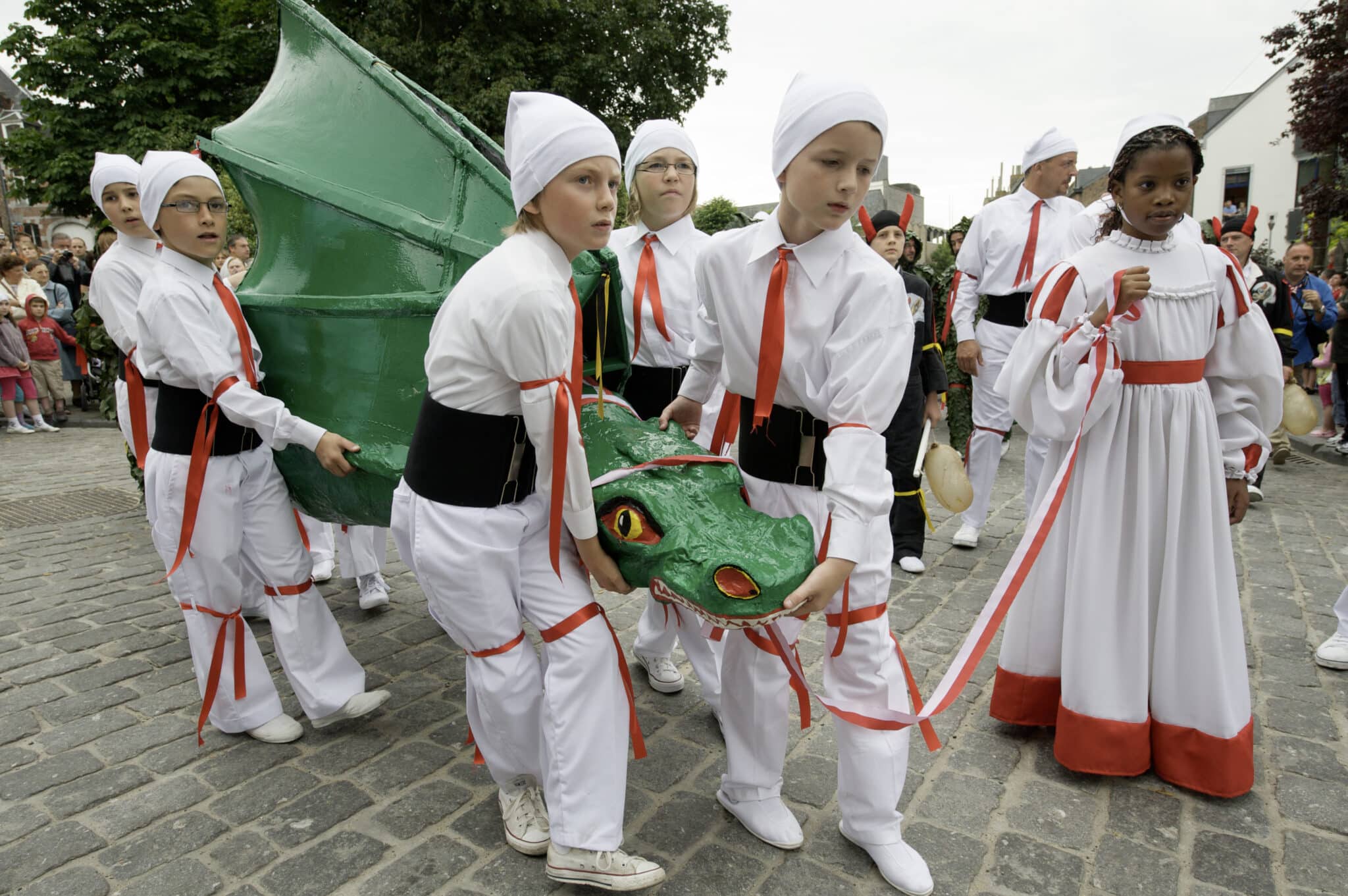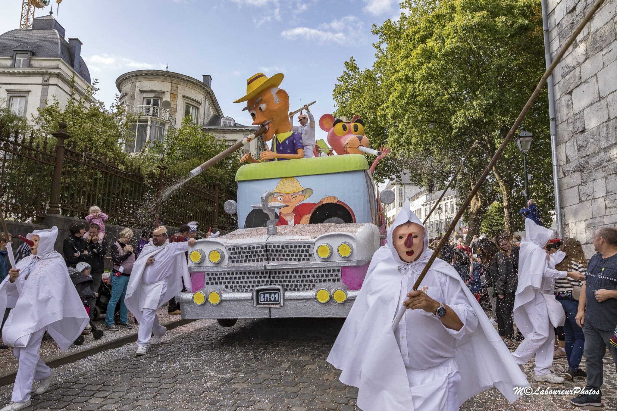 À Stavelot, les vedettes sont les Blancs-Moussis, tout de blanc vêtus avec un long nez rouge et un sourire XXL. Leur mission ? Bombarder la foule de confettis. Leurs armes secrètes ? Des vessies de porc pour flageller les spectateurs (tout doux, promis). Leur rituel ? Accrocher des harengs secs dans les cheveux des plus téméraires et polissons !