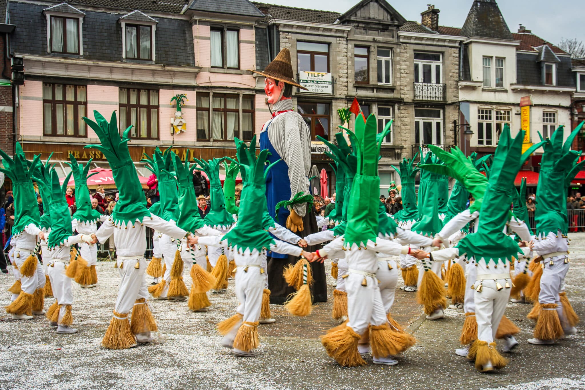 Prêts pour un carnaval familial qui ne manque pas de piquant ? Direction Tilff, dans la vallée de l’Ourthe, où les super-héros locaux ne portent pas de capes… mais des cagoules vertes et des salopettes blanches comme des poireaux ! Ici, les Porais Tilffois défilent accompagnés de géants de 4 mètres et des musiciens surnommés les Jardiniers Mélomanes. Quel programme !