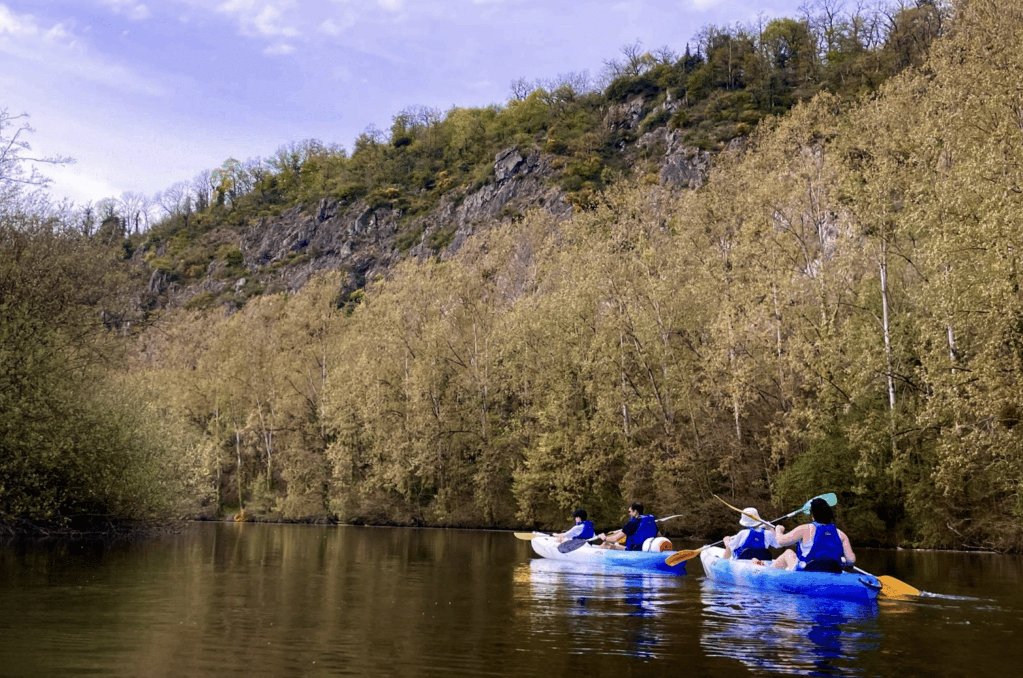 Très vite, les enfants se prennent au jeu et s’improvisent capitaines. Sur l’eau, chaque virage devient une mission : repérer une poule d’eau, imaginer des histoires légendaires : Guillaume le Conquérant surgissant de la falaise d’en face ! Les parents, eux, savourent cette parenthèse de slow tourisme, où le temps s’étire doucement.