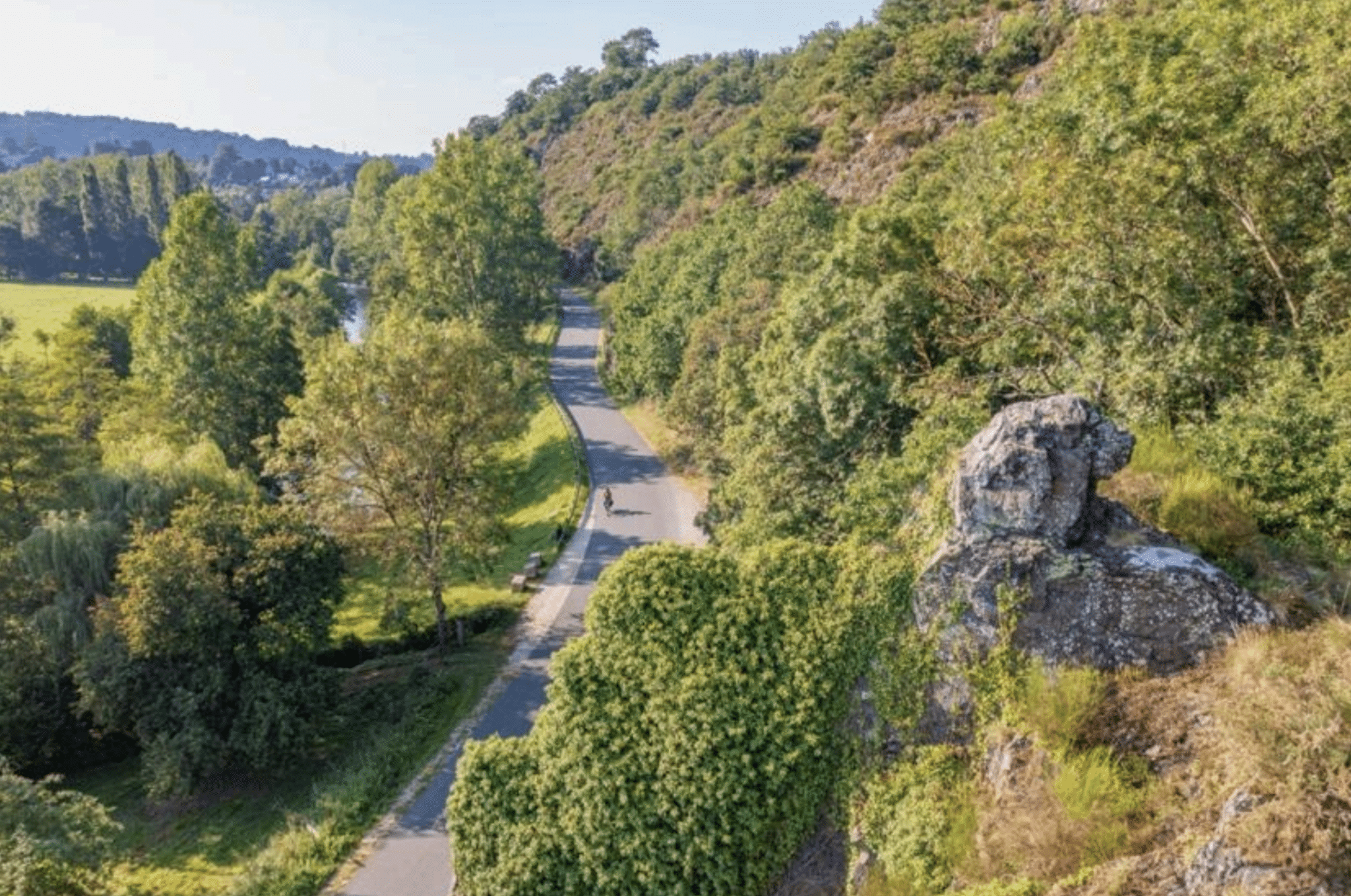 Vallées encaissées, falaises et rivière qui zigzague : on se croirait en Suisse… mais en version plus douce et ultra verte. Certains diront même “petite Slovénie”, pour son côté sauvage, ses rivières et ses paysages verts.