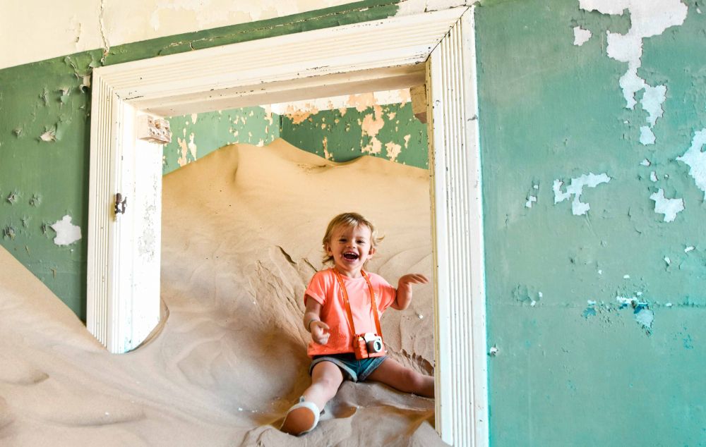 Nous avions vu bon nombre de photos incroyables avant de partir et avons pu en prendre tout autant sur place. Daphnée a adoré se rouler dans le sable et explorer chacune des pièces des maisons. Celles-ci sont envahies par de réelles dunes de sable sur lesquelles on doit parfois marcher à 4 pattes pour déambuler ! On y trouve encore de vieilles baignoires, des lavabos, et des tapisseries de l’époque. Photographiquement parlant, c’est un spot incroyable !