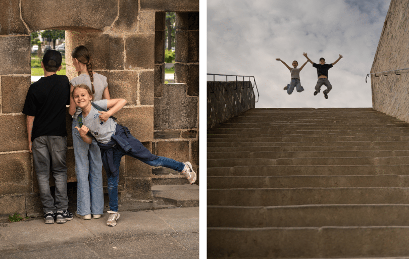 Nous avons décidé de découvrir le cœur historique de Nantes, en prenant part à l’une des nombreuses visites guidées proposées par l’office de tourisme, librement accessibles avec nos Pass Nantes. C’est au Château des ducs de Bretagne, monument phare de la ville, que nous avons rendez-vous. Avant la visite, nous faisons le tour des remparts du château avec les enfants. Le chemin de ronde, ponctué de sept tours, est un terrain de jeu idéal.